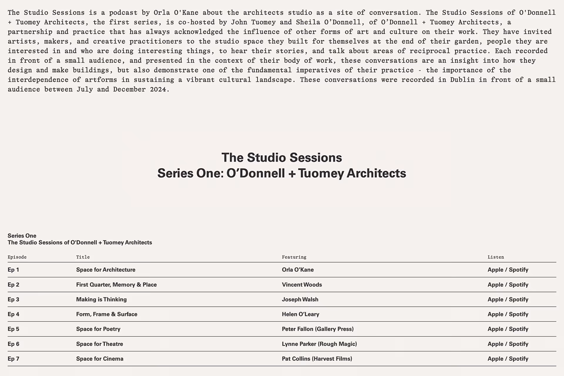 The Studio Sessions, Series One: O'Donnell + Tuomey Architects